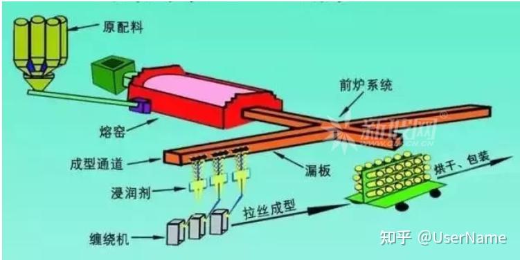 1.玻纤的生产工艺(这里要给出生产流程简图、以及所涉及到的原料)