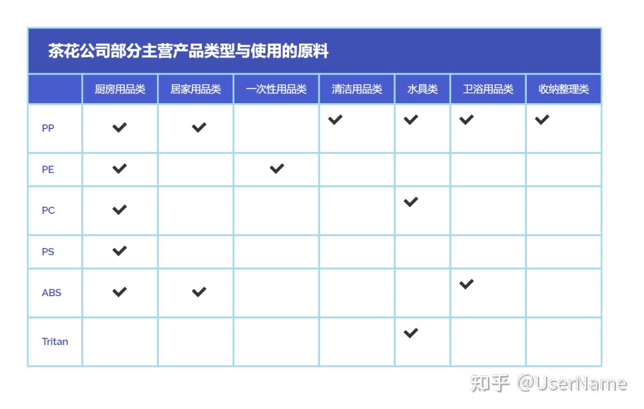 茶花现代家居用品股份有限公司以制造业为主,主要的产品为塑料制品,占营业收入的百分八十以上,该公司的商业重心几乎全在国内市场,在市场上常见的商品多为塑料日用品如收纳箱,衣架,座椅,水杯等,PP为最主要的原材料,次为PE,水杯大部分原料为Tritan。
