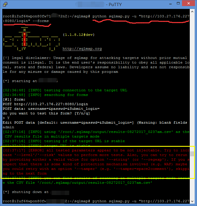 用 sqlmap 扫了一下登录表单的注入点,发现并没有找到。