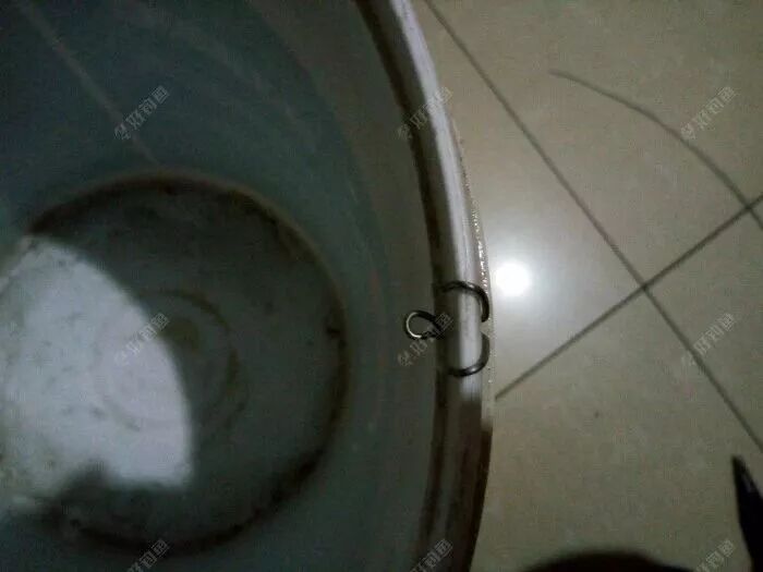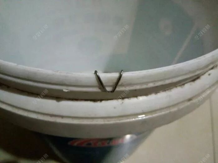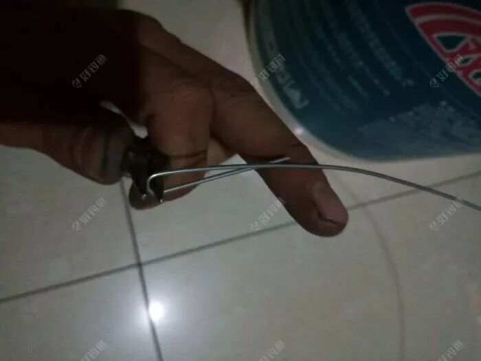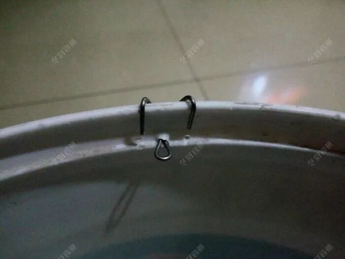 然后分开焊丝,朝两边稍微掰开点,顺着桶边往桶内弯曲,用尖嘴钳一定要夹紧,不会出现松动。