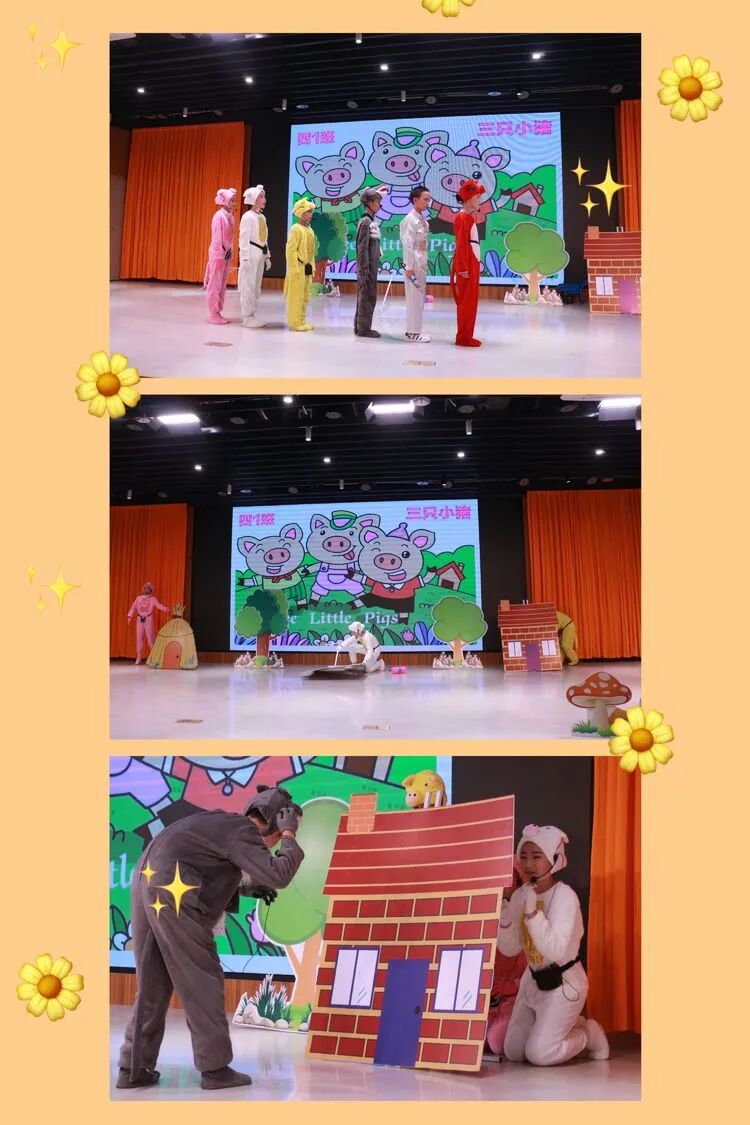 三年级的版本将三只小猪可爱憨厚的形象逼真地演绎出来,孩子们在口语表达上投入了自己的情感,展示了标准流利的英语,未来可期。