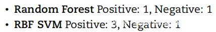 RBF SVM 使用以下超参数实现了 92.4% 的精度和 88.9% 的最高性能召回率: