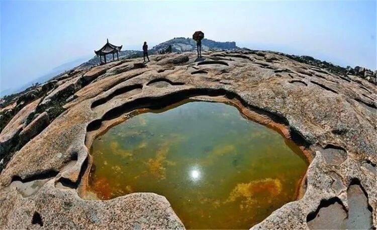 ●【大蚶山】——大蚶山的背后就是东海,东风吹来,海上的水蒸气就升腾、弥漫,在大蚶山上汇聚成壮观的云海,所谓“天云”,其实就是“海云”。相传蚶山远古时代原为海底一巨礁,后因地壳变迁,升出海面,其历千年浪淘潮蚀,成为今日岩阵群立,怪石杂陈,洞穴奇多,石像遍布的景观。而大蚶山之得名,据说也是由于其主峰上的两块状如蚶贝的巨石,它们像两面高高的旗帜,彰显这座山源自大海的不凡身世。最奇特的是这里的水还有用“碟”装的,所谓“碟”,指的是浅浅的石窝,底是平的,边缘或圆或扁,或如花瓣,或如云朵,大大小小数十“碟”,参差错杂地铺排在山巅一面200米见方的石台上,当地人称之为“三十六碟”,相传是“仙佛斗法”留下的,如碟、如盆、如盘、如碗的“三十六碟”,是用来盛酒菜的餐具,非常的生动。 如今,杯中的美酒已空,碟里的佳肴难寻,“三十六碟”全是水,清纯得如一面面镜子,映照出无数人间风光。在众“碟”之间穿行,每一“碟”都装着天空与云朵,每一“碟”都嵌入游人的倒影。这片海鱼们当年的乐园,如今已成了莆田知名的旅游景点,对许许多多没有机会潜入海底的人来说,天云洞还真能让他们窥得几分其中的秘密。登山犹如下海,玩山还能探海,在这样的景点里遨游,游人一定也会像当年的游鱼一样自在快乐吧。