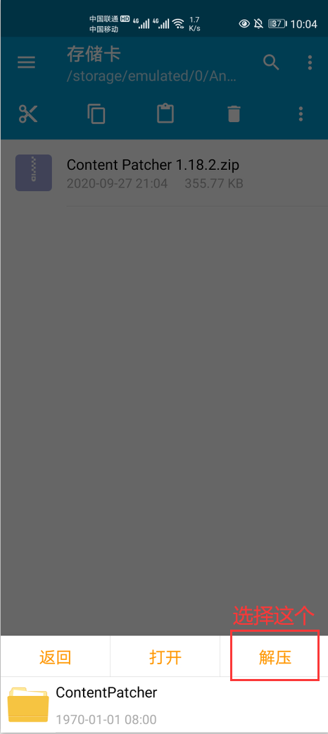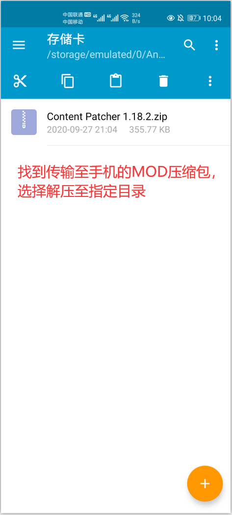 将CP压缩包传输至手机上。传输用QQ,数据线等都可以,不再赘述。