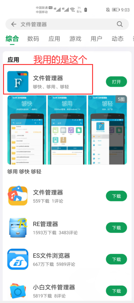 我此处选择的是一款就叫“文件管理器”的APP,也是酷安下载。