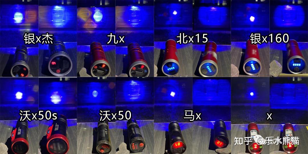 实际测试效果,聚光状态下光斑面积(越小越好)排名:x>北x15/银x160>马x>沃x50>沃x50s>银x杰/九x66。不过即便是光斑最大的两只灯,其光斑也相当集中了,使用手竿时,足以满足精准抛竿的范围。