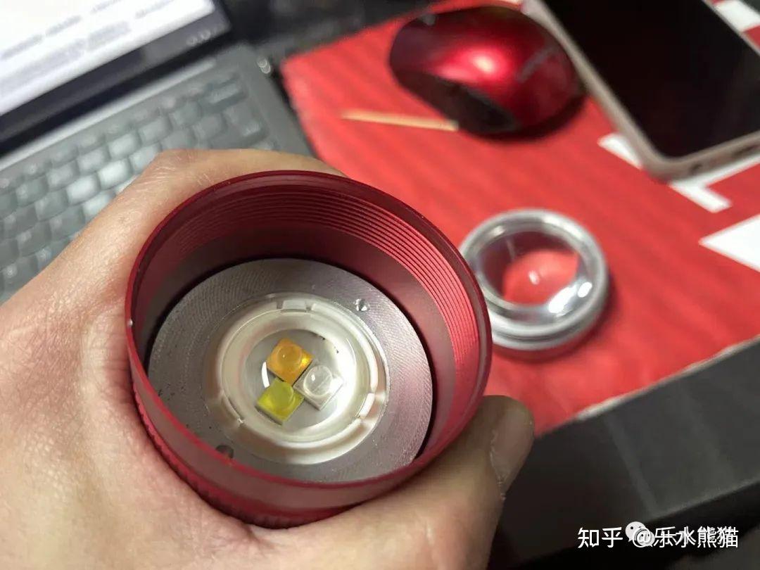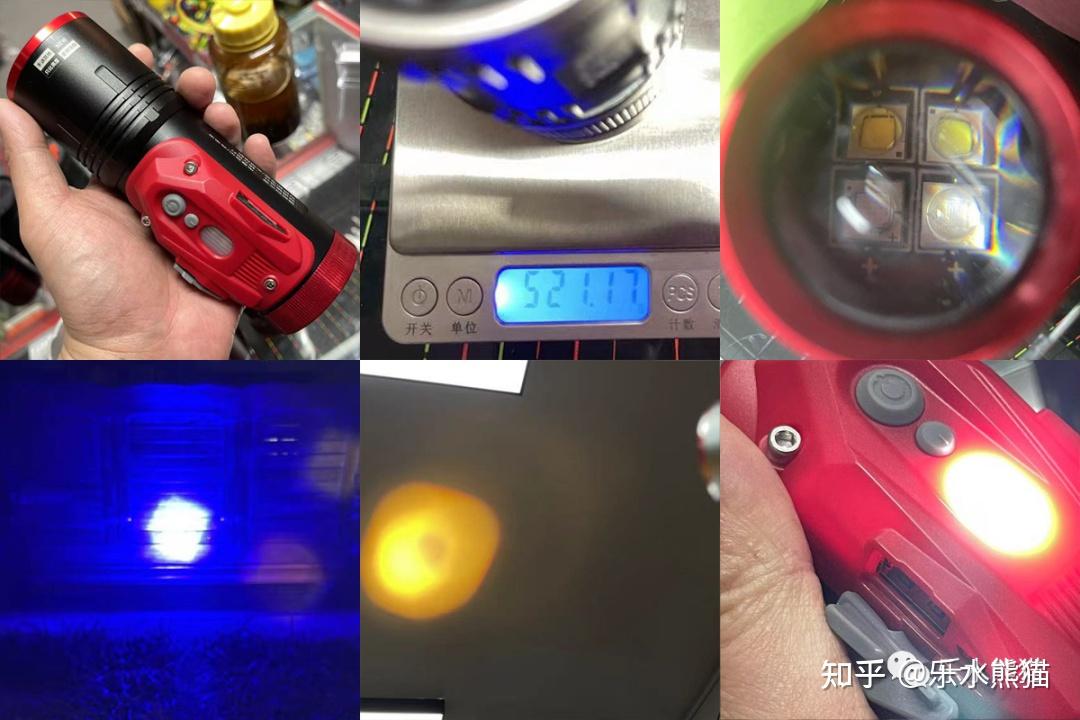 虽然有光斑不匀的缺点,但可以通过拆掉第二块镜片来改善。同为4节18650电池,它俩最粗壮,虽然不难看,却也最重,这是个缺点。没有紫光这个特性,对熊猫来说无所谓,因为从来只用蓝光黄光。
