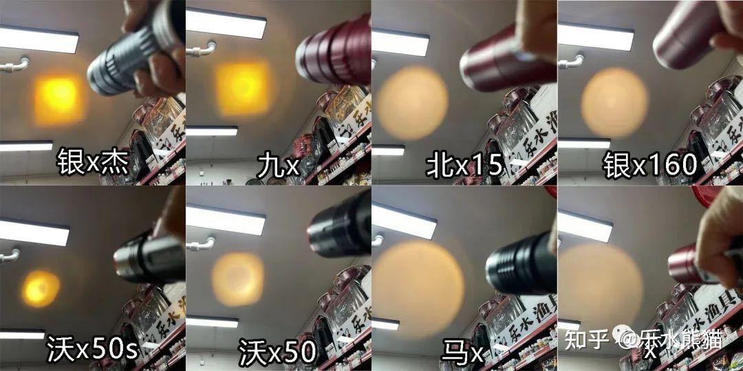 而在散光状态下的面积(越大越好)排名:x>马x>银x160/北x15>银x杰/九x66>沃x50>沃x50s。前面说过了,光斑面积大一些,方便我们当手电使用。