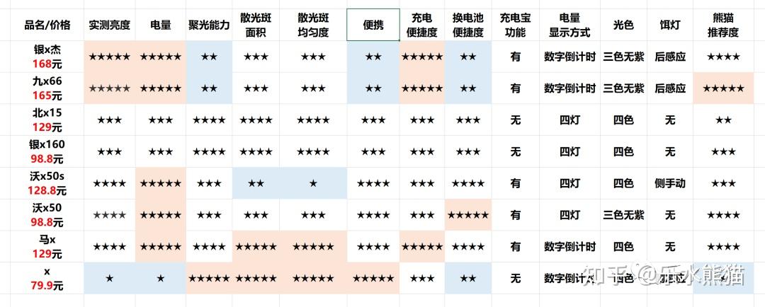 银x杰和九x这两款灯本来就是同款,熊猫认为,关键指标不错,亮度高、电池容量大,还带有感应饵灯、充电宝功能。