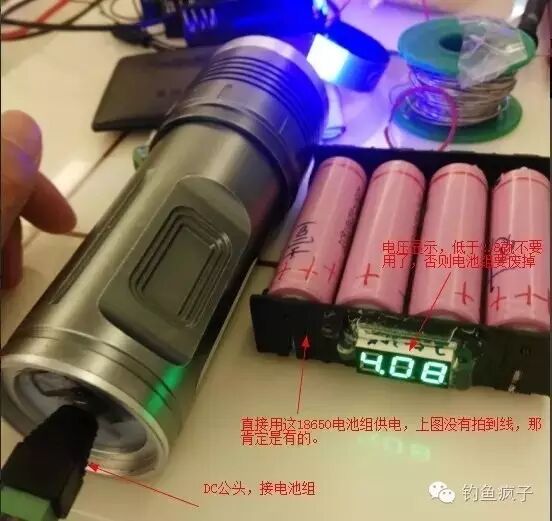 基本上,接上电源就可以了,考虑到这个灯本来是3W的,散热设计肯定不到10W的要求,所以直接把电池做成外置,也好续航,所以直接做成一个DC母的接口: