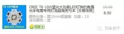 LED这种小灯珠,蓝色,目前最牛逼也就10W,所以,市场上超过10W的蓝色都是扯淡,最后选了一个T6的,还有什么L2,U2都差不多,因为都亮瞎眼了。当然一个好灯还有很多因素:灯杯大小、透光,对焦性能,还有散热。