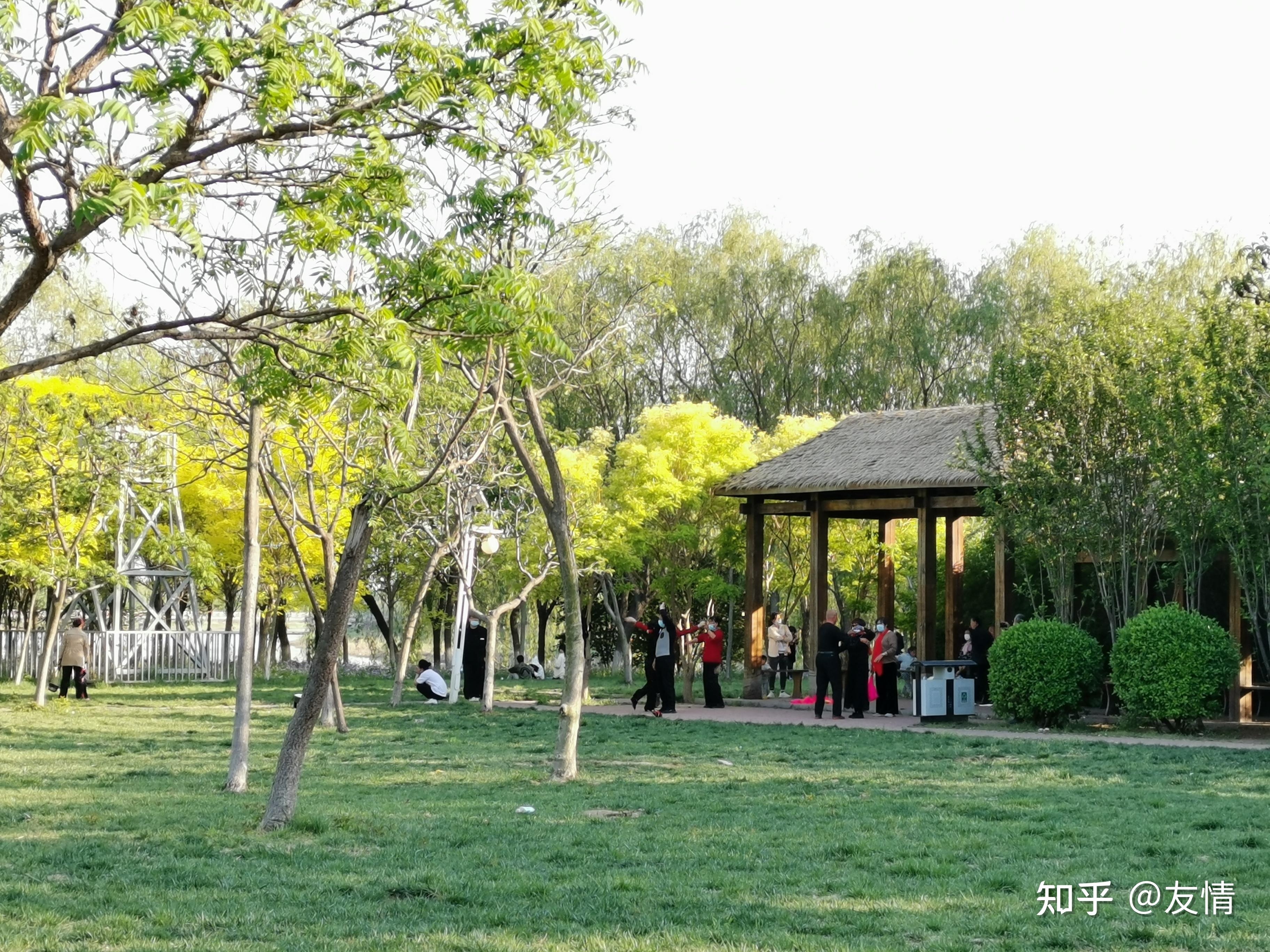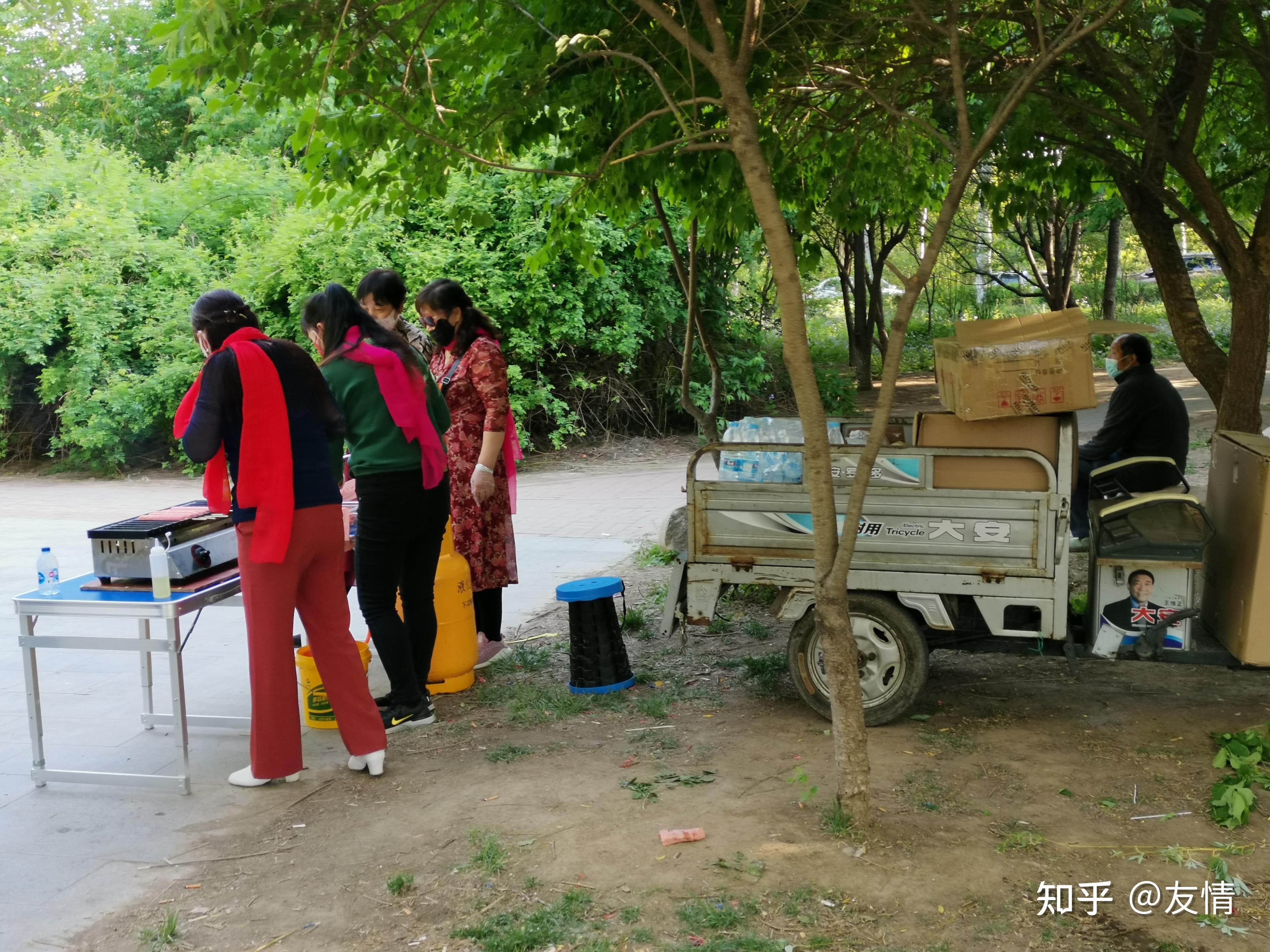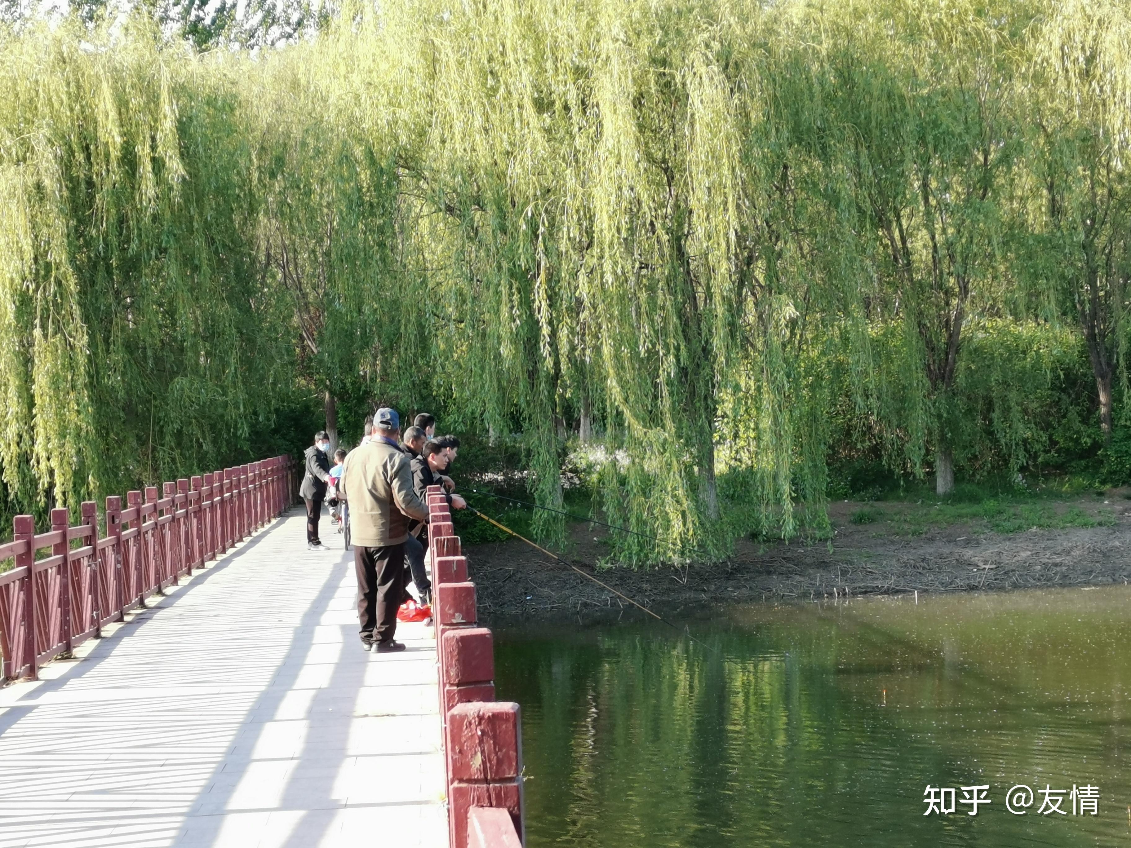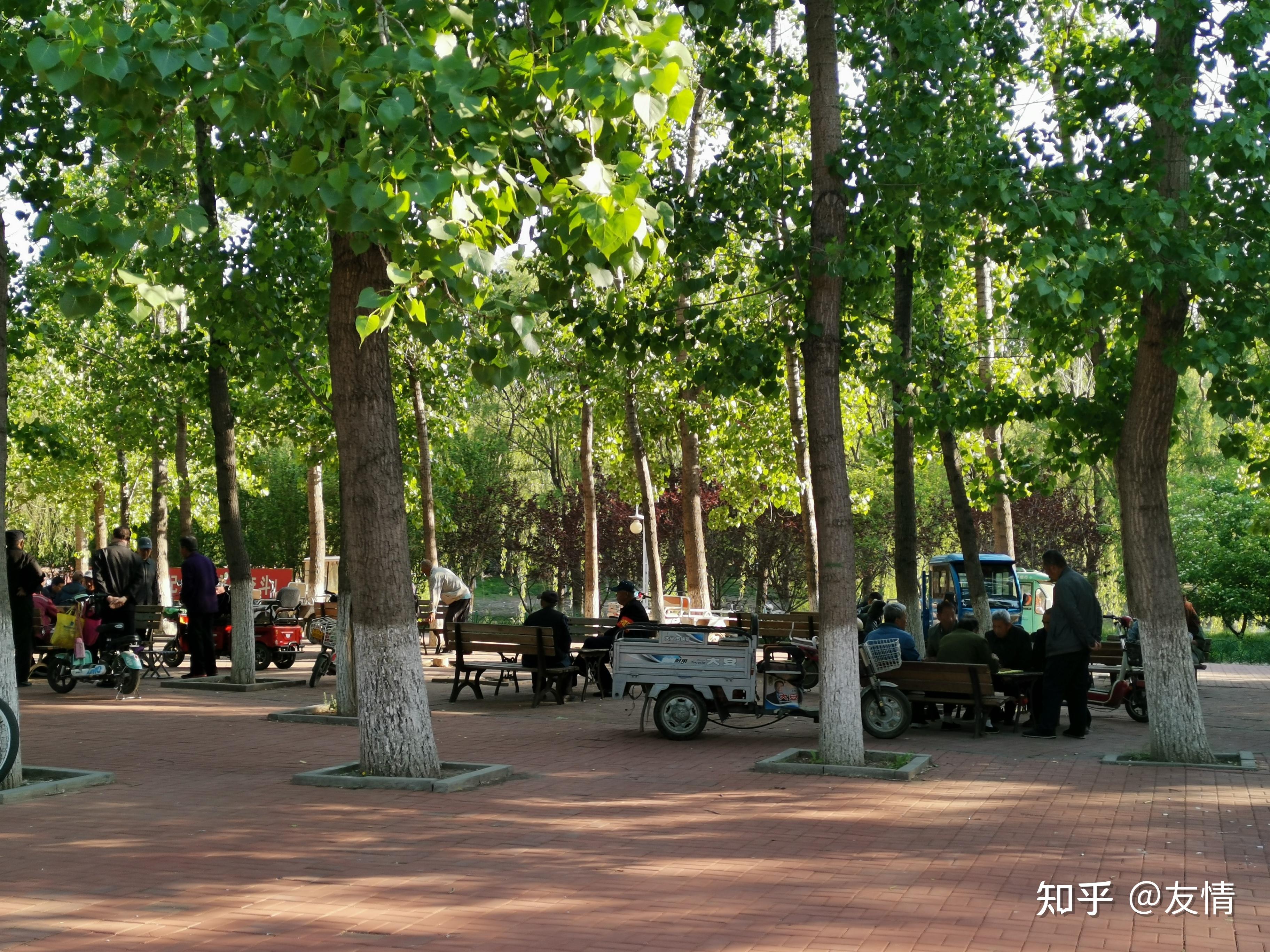 在河边有钓鱼爱好者在垂钓。在广场,分为几个范围,有的在跳街舞和交谊舞,也有歌唱爱好者在引吭高歌、一群人在欣赏;在高高的杨树林中,浓密的树荫下,则有扑克群和象棋群;我还想在这里玩累了、渴了怎么办?果然就看到有售卖烤肠、瓶装水的小货车。