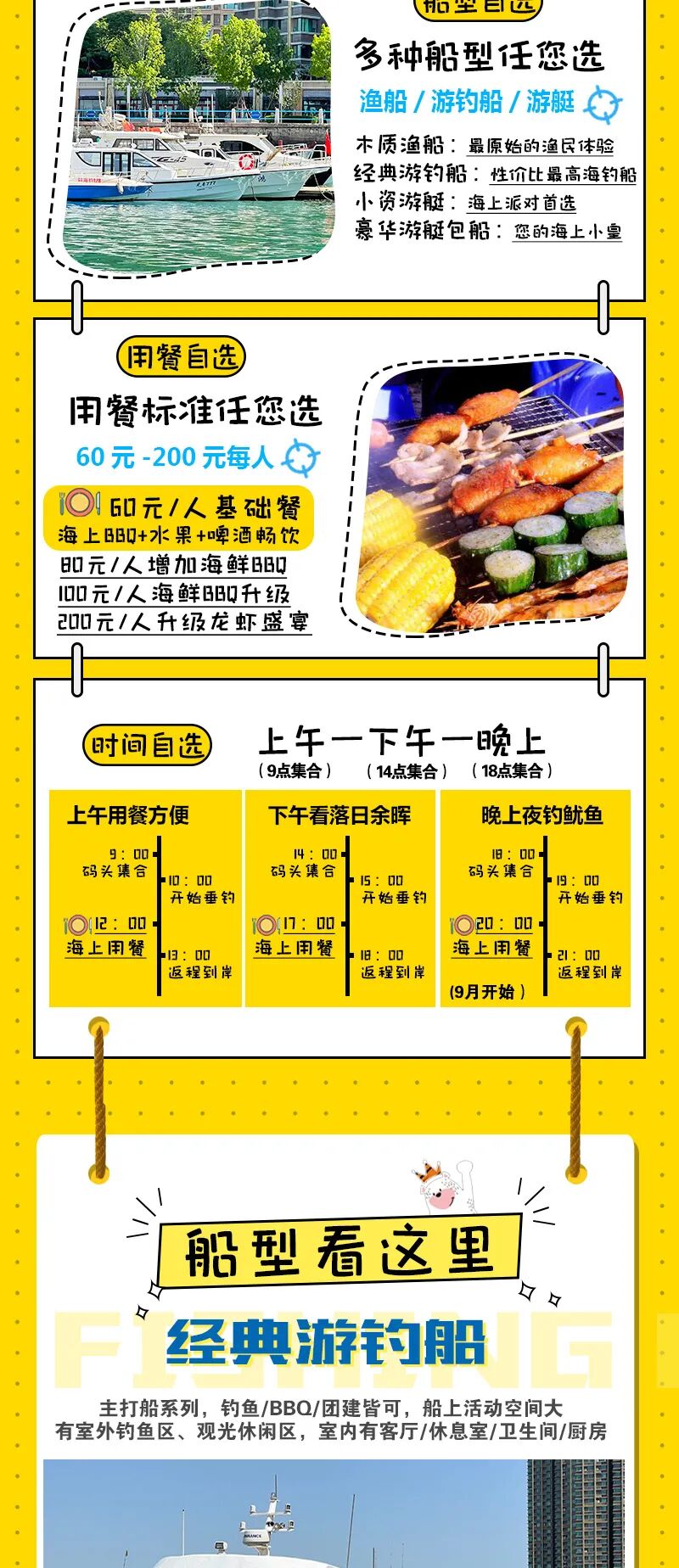 ②、出发时间一般一天分为两批:上午9点和下午1点,到了夏天 还会夜钓呢,那就晚上出发啦~