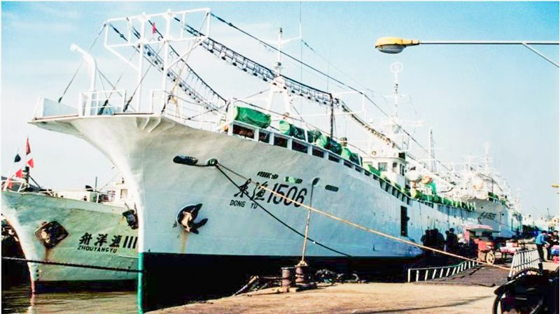 1996年浙江兴业集团购置“东渔1506”等三艘国外二手专业鱿钓船,高薪聘请韩国船长在全国率先赴西南大西洋公海试捕作业,首战告捷,不仅示范引领一批国营大吨位专业鱿鱼钓船纷纷到西南大西洋阿根廷新渔场生产,并且带动一些我市群众鱿钓船东加入试水。
