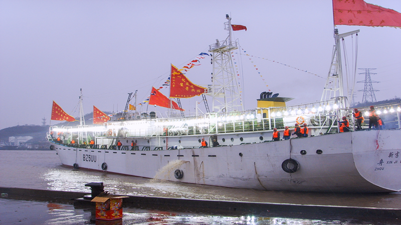 2008年全球金融危机,钢板等造船原材料价格处于历史低位,迎来造船发展的好时机,且我省率先在全国出台了15%省市层面鱿钓造船叠加补助扶持政策,大大鼓舞了业内发展信心,当时我市共有52艘列入浙江省远洋渔船新建补助计划中。2009年7月,舟山普陀远洋渔业总公司“普远801”和舟山汉益远洋渔业公司“汉益705”二艘新建专业经济型鱿钓渔船先后在岱山仇家门船厂顺利下水。2010年2月,在宁波象山石浦建造的我市乃至全国首艘型宽9.8米的西南大西洋经济型鱿钓新建渔船新吉利公司“新吉利16”远赴西南大西洋公海渔场生产。