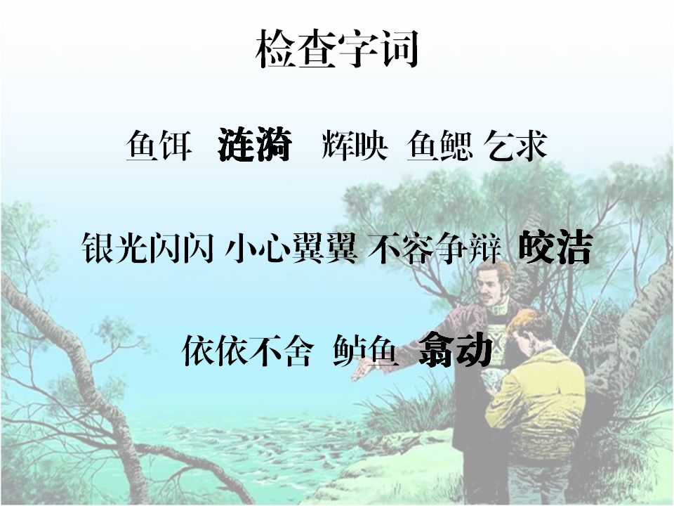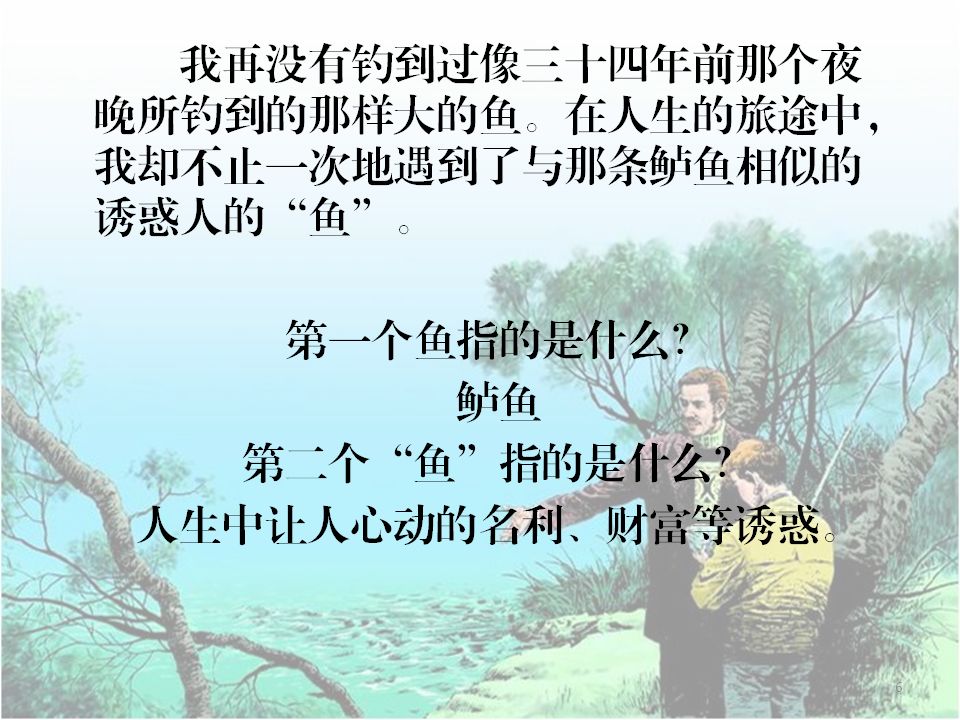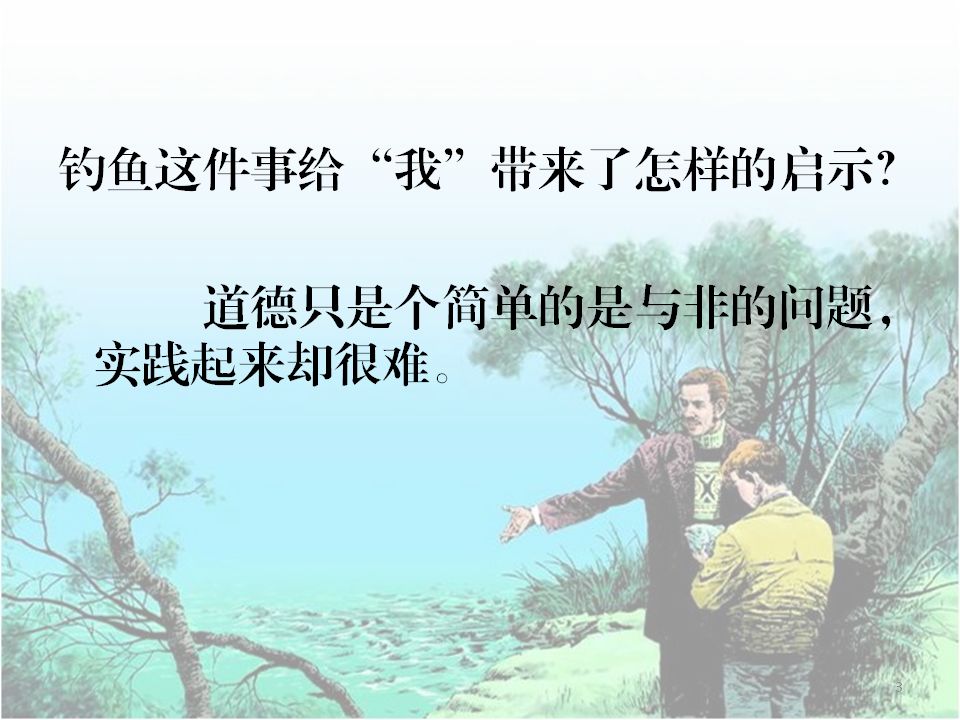 (ppt1)今天我们继续学习,齐读课题《钓鱼的启示》。先回忆一下上节课的知识。