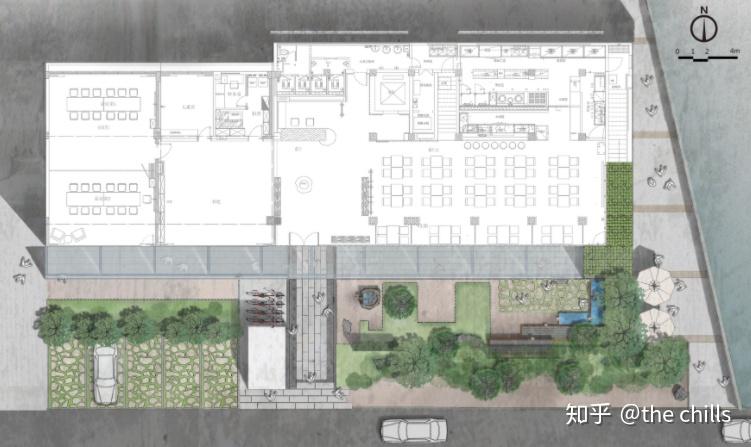 集中动线的策略不仅创造了一个半公共的户外空间,还方便了不同部门间的合作交流。午餐时分,围合的庭院还能提供活跃的就餐环境。庭院还将通往南大门的公共人行道连通至步行桥的拟建位点再至庭院东北侧,这样的对角线路径也强调了庭院的“半公共性”。