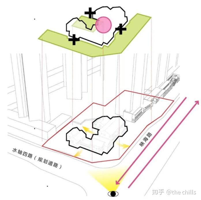 在中国,裙楼的建筑容积率往往无法应对城市人口密度增幅造成的压力,于是就导致了城市建筑过度依赖塔楼来达到市政规定的容积率标准。因此针对当下的城市环境,混合型建筑可谓是一个行之有效的解决方案。一座塔楼从裙楼中拔地而起,这样的组合类型优势多多:裙楼能够激活城市街道边缘,并且实现良好的采