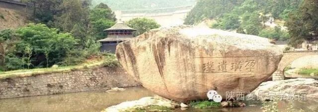景区代表景点,自然的神力把这块重约400吨的巨石轻轻放在磻溪峡谷中间,周围绿水环绕,两岸古柏森森。“孕璜遗璞”四个大字,是公元1794年,时任宝鸡县令的杭州人徐文博所书:盛赞此灵矶璜石为天地孕育,遗存至今的半壁璞玉.
