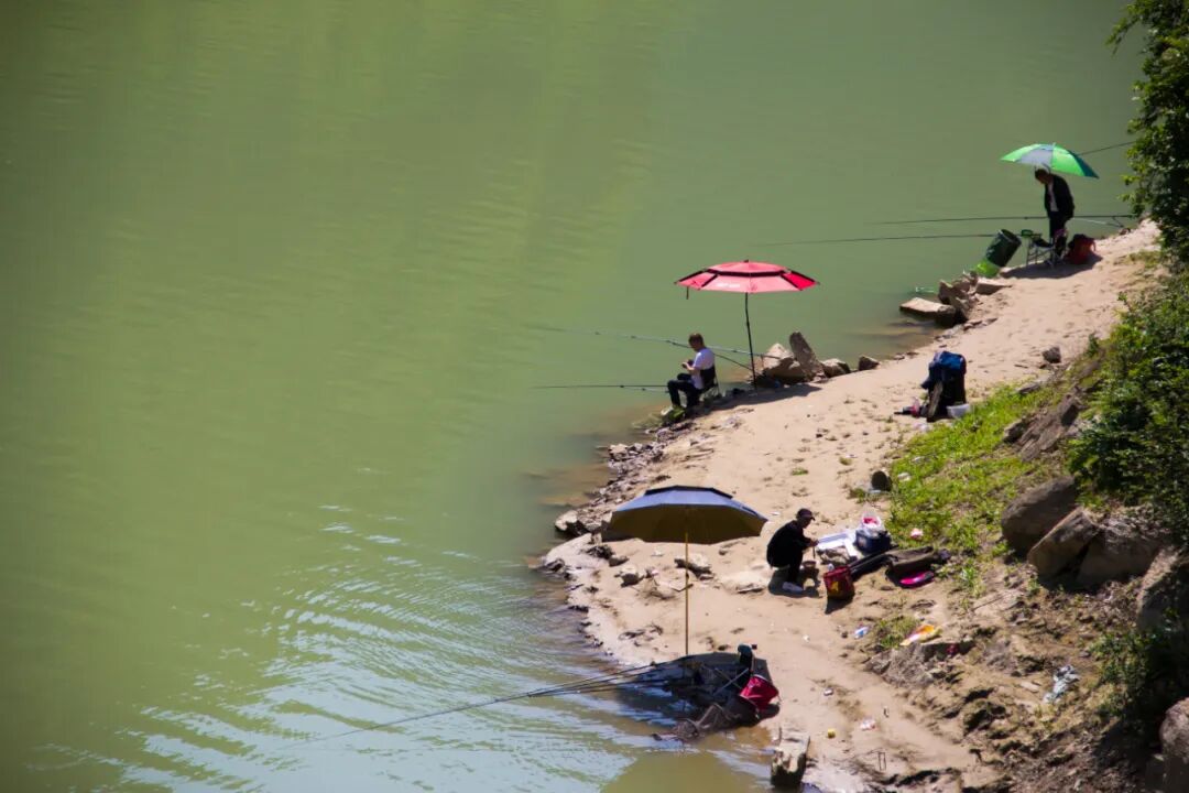 一辆车、一个人,一瓶水、一个馍,一个小马扎、一把太阳伞,再加上三五根钓竿,这就是金钱河边,见到的典型钓鱼场景。