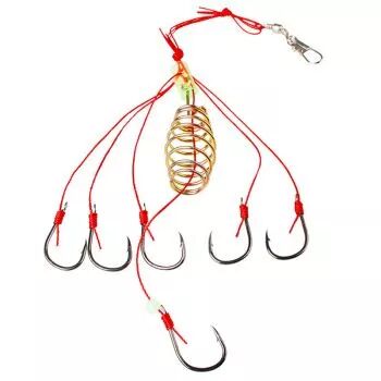 2.绑钩钓鱼要尽量学会绑三种钩,即绑单钩、绑双钩、绑串钩。绑单钩分为用软脑线绑钩或用主线直接绑钩两种,绑钩绕线的方法有单绕和双绕之分,至少应掌握一种绑钩绕线方法。绑双钩分为平行形双钩和上下形双钩两种,绑平行双钩要设分钩件,可防止绞线。上下形双钩有传统钓和台钓之分。传统钓上下形双钩的坠体在长脑线二分之一处,台钓的坠体在对折双线的顶部。两钩也是上下错开的。绑串钩有用软线绑钩和硬线绑钩两种,软线绑串钩主要用于钓大鱼,硬线(尼龙线)绑串钩主要用于钓小鱼。不论软线硬线,从钩尾到主线的脑线长应设置在50~80毫米为宜。串钩为坠上钩,鱼钩连接在主线上,脑线过长会影响上鱼。