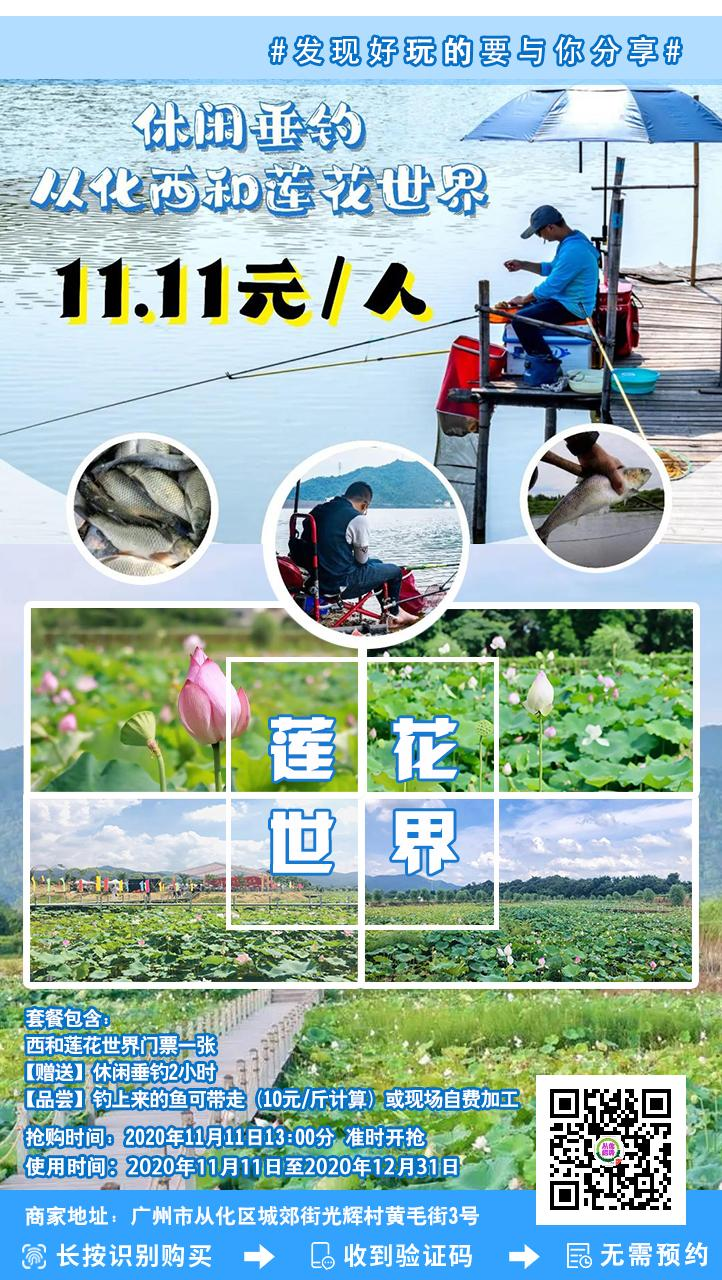 【从化】11.11元惊喜秒杀从化莲花世界门票!双十一钜惠,送2小时休闲垂钓体验!周末不再犹豫去哪里,休闲垂钓,静享美好时光!