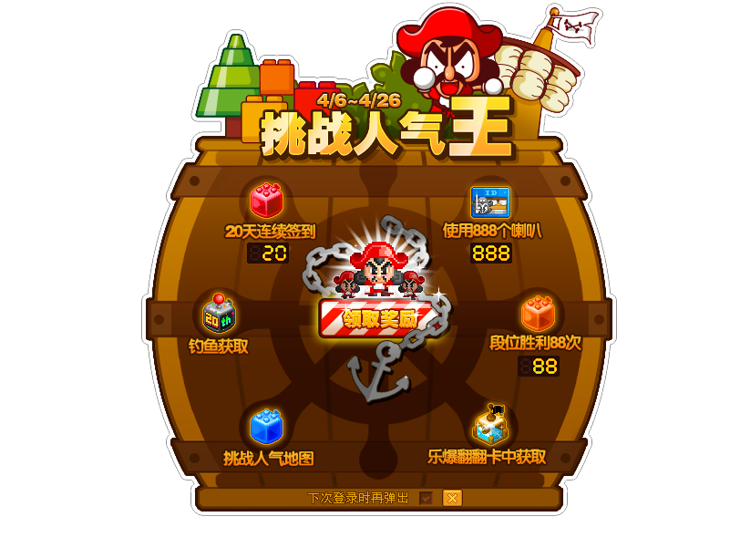 1) 游戏登录后,在弹出的挑战人气王,确认任务内容。